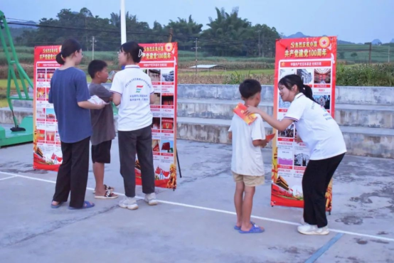 为庆祝建党100周年,深入贯彻习近平总书记在党史学习教育动员大会上的重要讲话精神,把党史学习教育同乡村振兴有效融合,推动党史学习教育走深走实,助力乡村振兴工作蓬勃发展,7月13日,我校人工智能学院暑期社会实践队赴南宁市上林县乔贤镇横岭村开展党史宣讲活动。