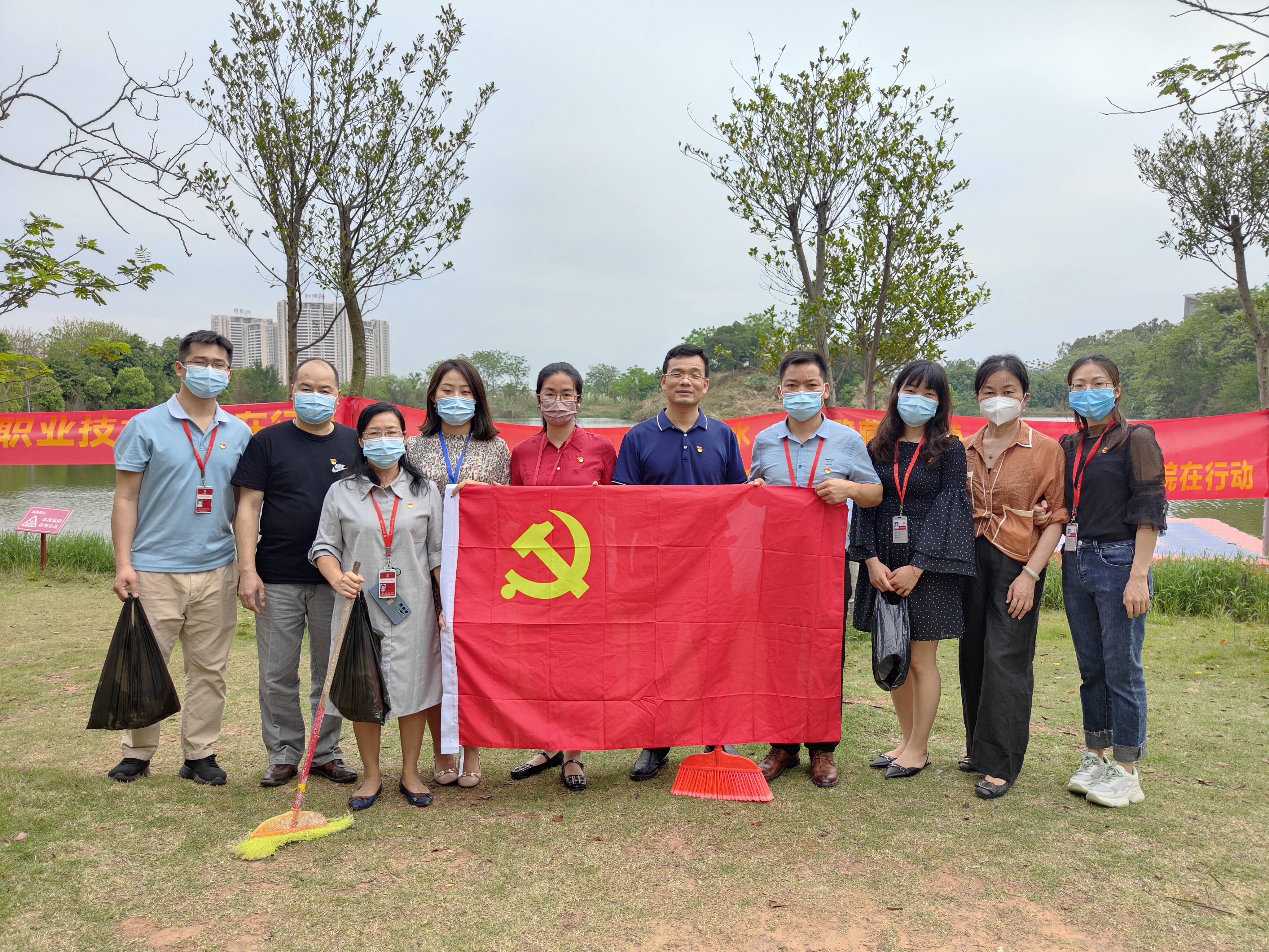 活动现场,党员同志们随学校大部队拾烟头、纸屑、塑料袋等垃圾,并用垃圾袋分类装好,身体力行保护了金葵湖的生态环境。