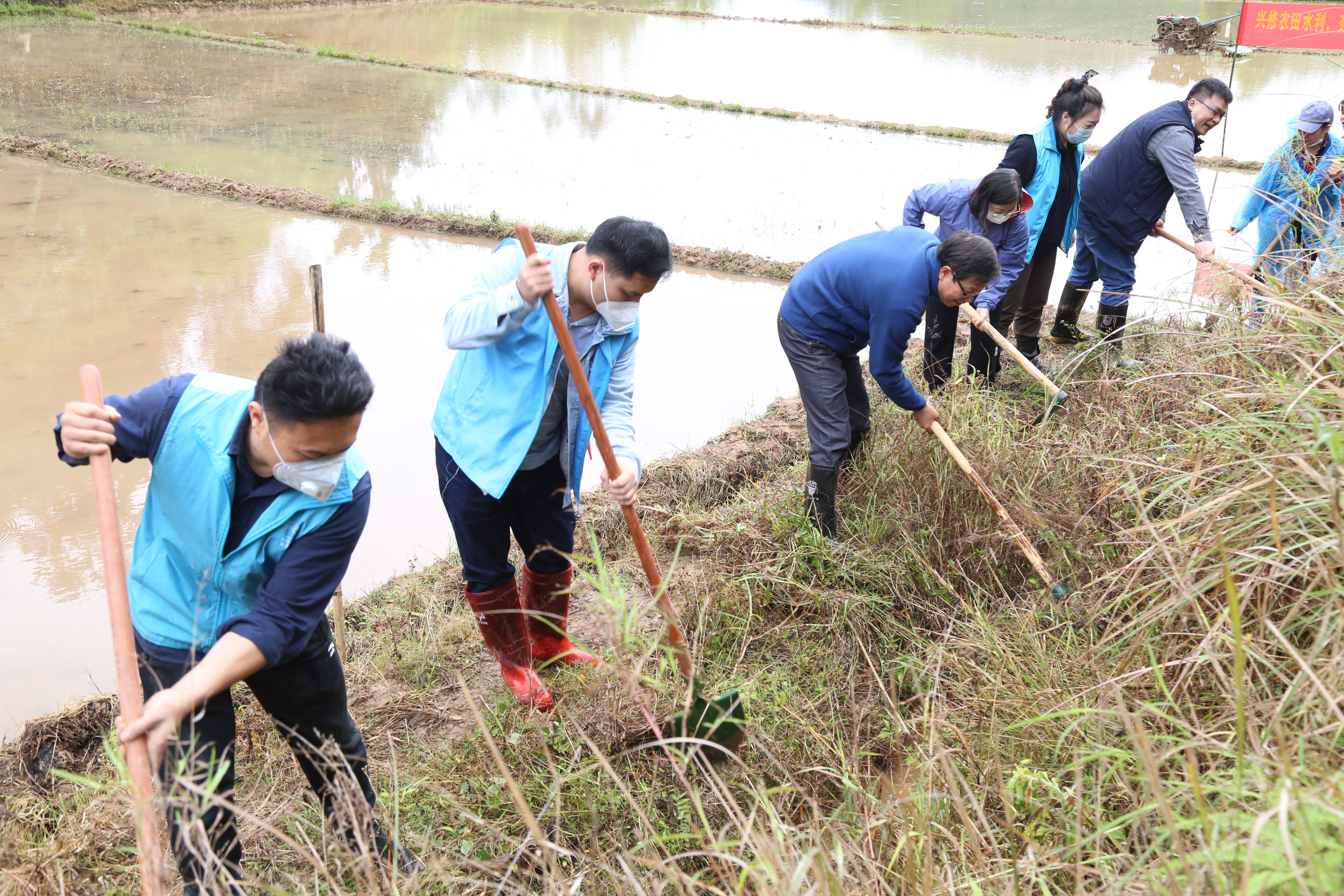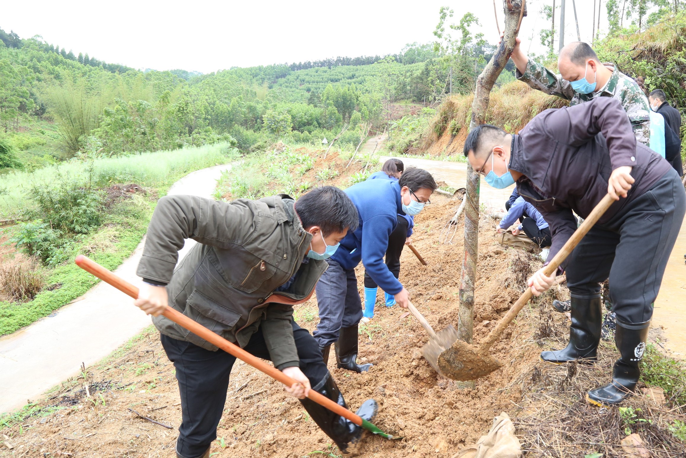 眼下春分刚过,兴修水利、植树造林正当其时。3月23日,学校校长周旺,纪委书记罗桂全到我校定点帮扶村上林县乔贤镇绿浪村,开展冬春农田水利基础设施建设和植树造林活动,并就巩固脱贫攻坚成果与乡村振兴有效衔接开展实地调研。上林县副县长宋尧华,学校办公室(乡村振兴办)、传媒学院、商学院有关负责人,上林县乔贤镇领导班子成员以及绿浪村“两委”班子成员、驻村工作队员等参加活动。