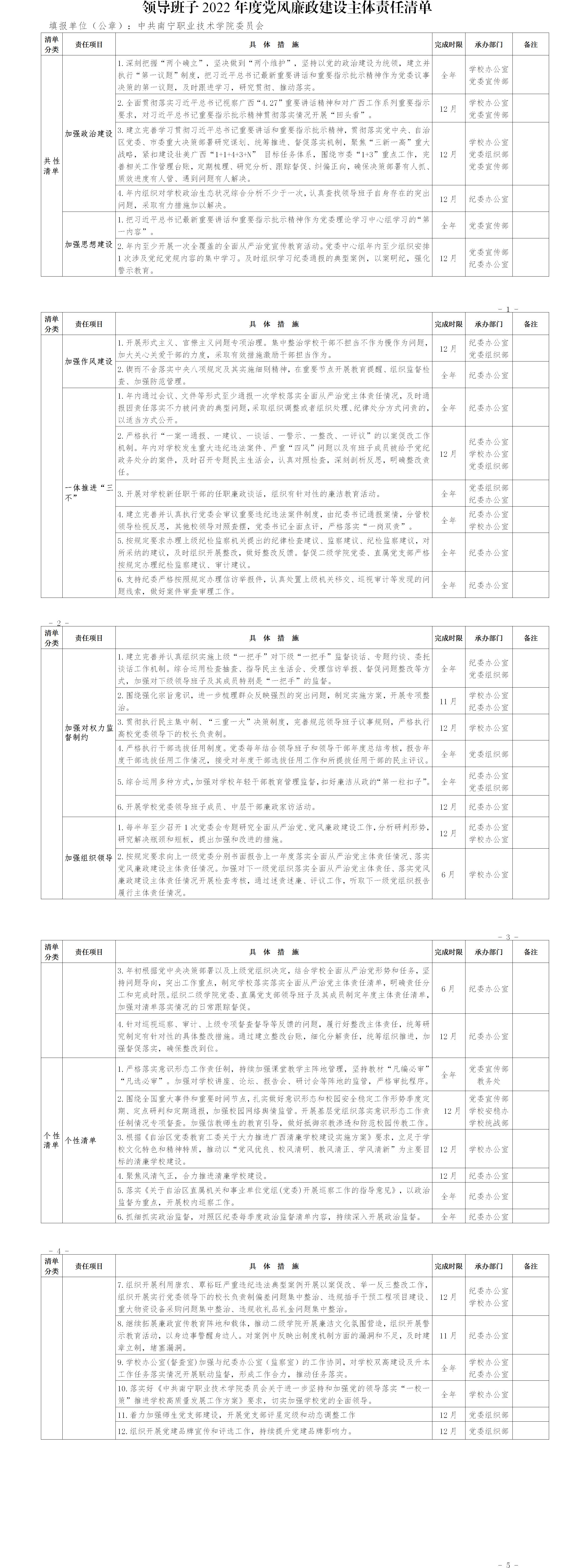 领导班子主要负责人2022年度党风廉政建设主体责任清单