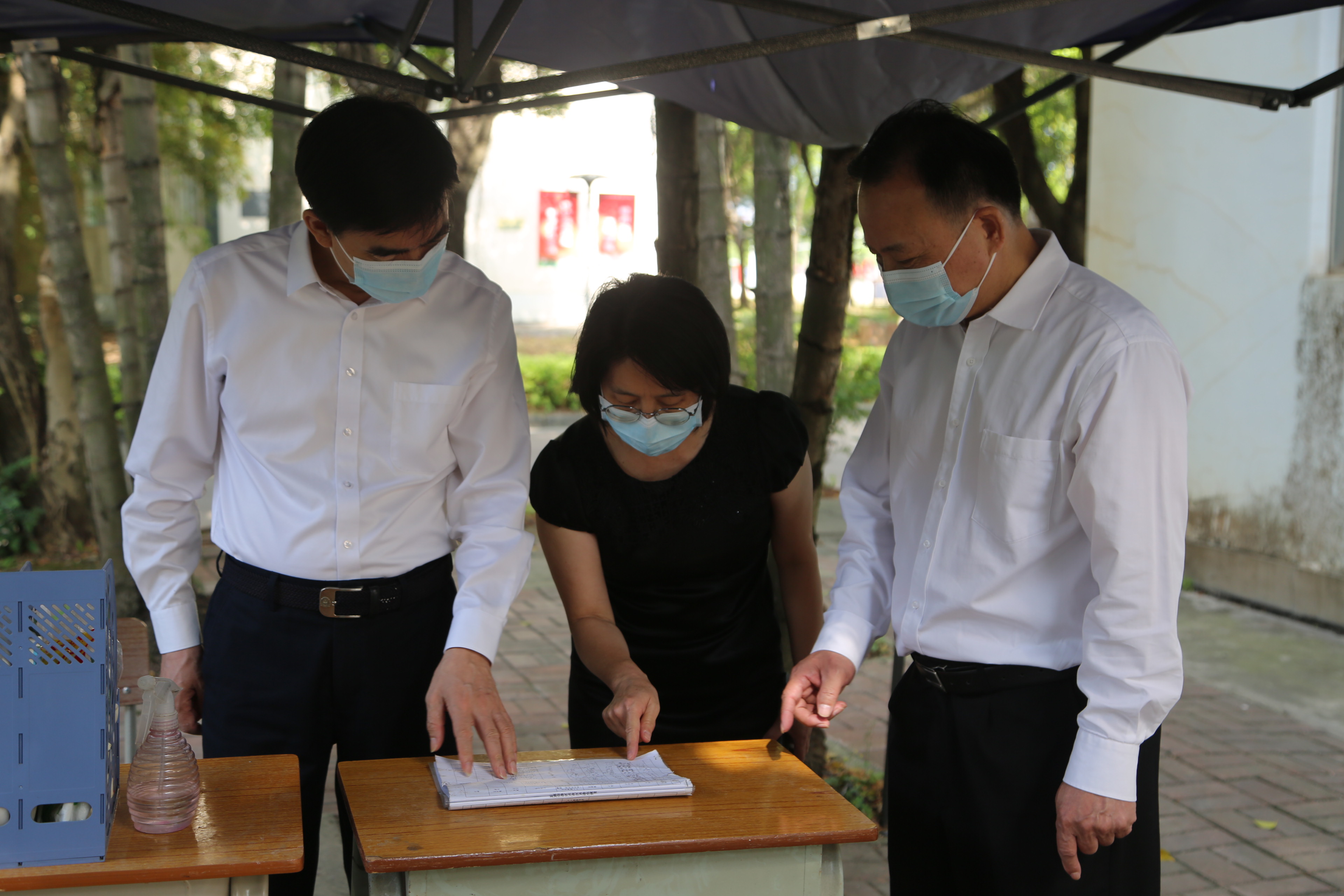 杨维超(中一)查看返校学生疫情防控管理情况(陈诚/摄)