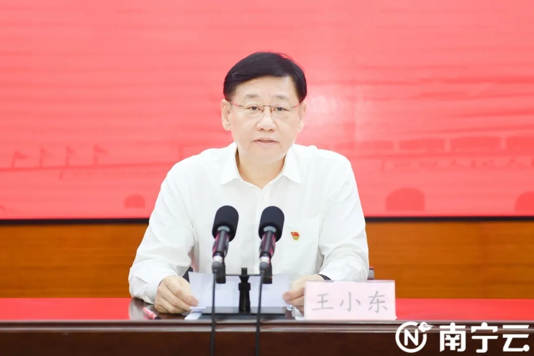 “南宁是一座具有红色基因、富有革命传统的城市,南宁党史是广西党史乃至全国党史的重要组成部分。”王小东与广大师生代表回顾南宁百年历史,感悟首府沧桑巨变。他指出,南宁解放以后,党和国家领导人一直高度重视和深切关怀南宁发展,在党中央的坚强领导和亲切关怀下,在党的民族政策光辉照耀下,全市各族人民传承红色基因,勇担职责使命,邕州大地发生了翻天覆地的变化,经济实力大幅跃升、城市美誉度大幅提升、城市开放水平大幅提高、人民生活品质大幅改善,与全国、全区各族人民一道昂首迈入新时代、全面建成小康社会。当前,南宁发展舞台之广阔前所未有,发展机遇之难得前所未有,人才激励保障机制不断完善,创业就业政策优惠、环境优良,为广大青年干事创业提供了大好机遇、广阔舞台。