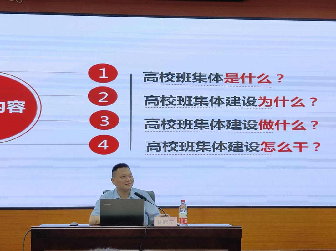 广西交通职业技术学院航海工程学院党总支书记林燚宁作高职院校班级建设主题讲座(李虹/摄)